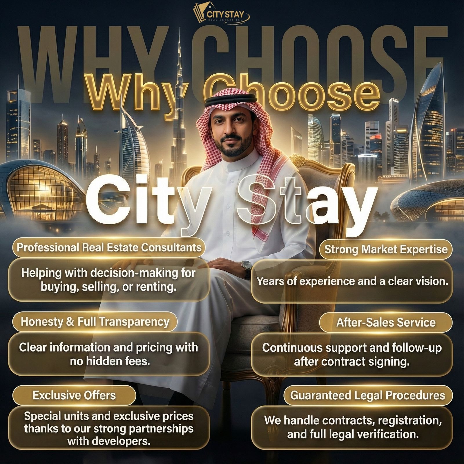 AT CITY STAY, OUR MISSION is to deliver premium real estate solutions that combine luxury, functionality, and long-term value.